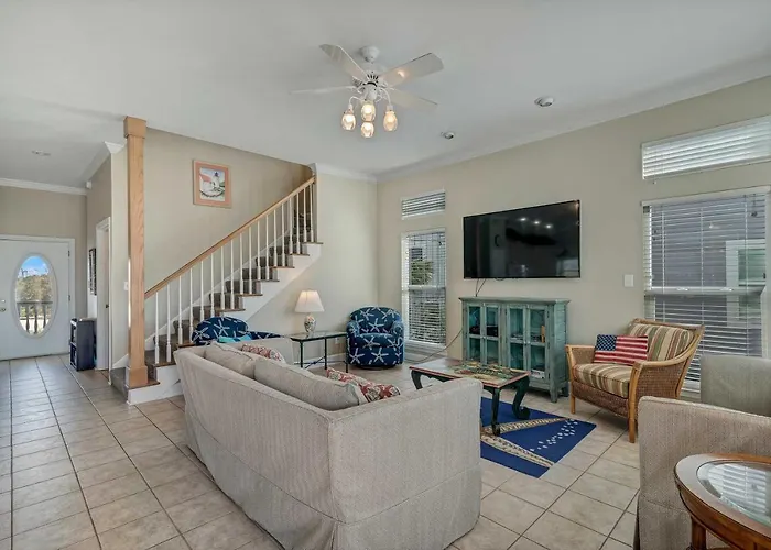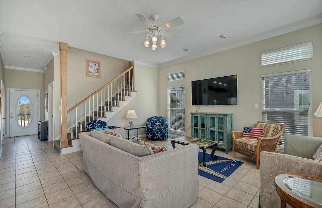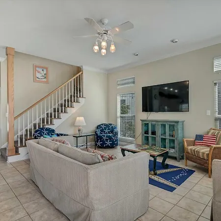 De 5-slaapkamer Sea Glass At Beachside Gulf Shores villa ligt op 25 minuten wandelafstand van het Adventure Island pretpark en nodigt gasten uit om aan windsurfen, snorkelen en mini-golf deel te nemen.